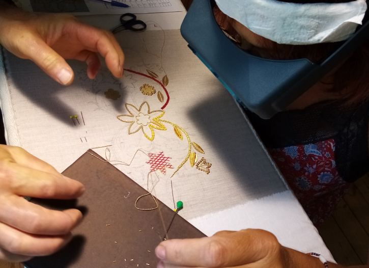 Depuis 1995, l’atelier est dirigé par Sylvie Deschamps, seule Maître d’Art brodeuse au fil d’or en France, aux côtés de son ancienne Élève de Maître d’Art, Marlène Rouhaud. Ensemble, elles incarnent l’excellence et la transmission des savoir-faire.
