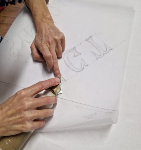 Avant de restaurer une broderie ancienne, un drapeau, une bannière, la première étape est cruciale : le relevé précis du dessin général et de chaque motif. Au Bégonia d’Or, atelier de broderie expert aussi en restauration textile, nous commençons toujours par reproduire fidèlement les contours des motifs à broder, qu’il s’agisse de broderies simples ou complexes. Cette phase garantit que chaque point de la future broderie épousera parfaitement le dessin original, préservant ainsi l’intégrité et l’authenticité de la pièce.